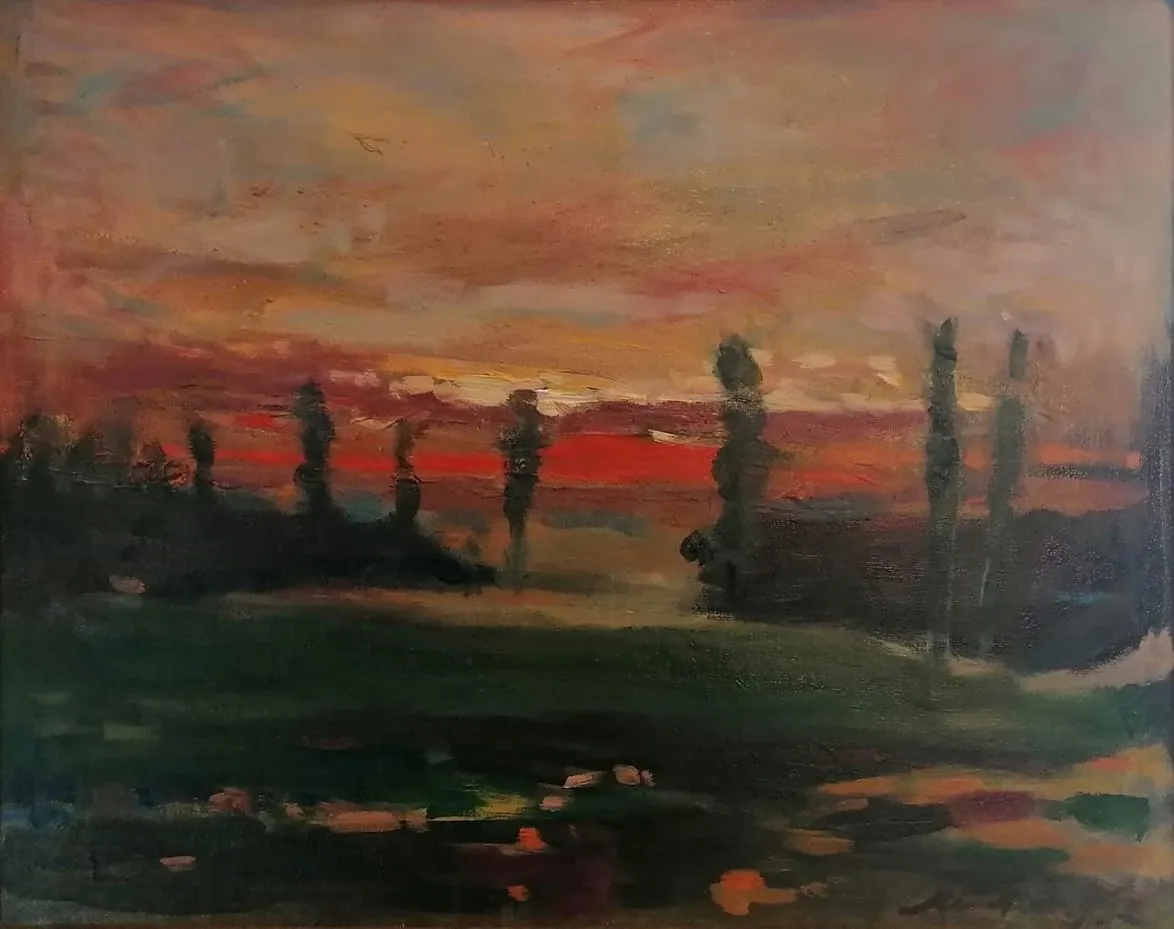 Zachód słońca nad stawem